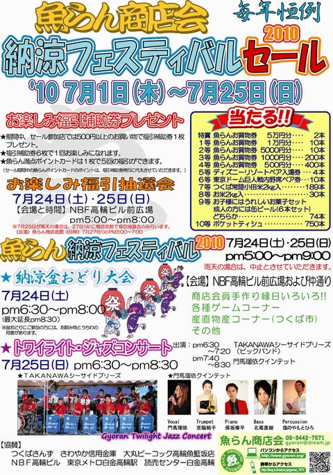 ※7月25日(日)が雨天の場合は、27日(火)に商店会館で福引抽選会のみ行います。