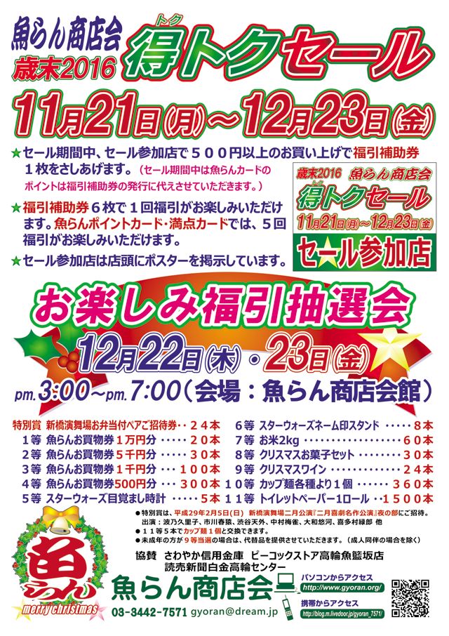 本日より魚らん歳末大売出し「得トクセール2016」が始まりました。