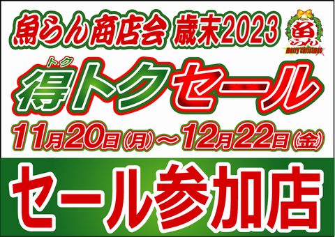 これからの1ヶ月は魚らん歳末大売出し「得トクセール2023」でお楽しみください。