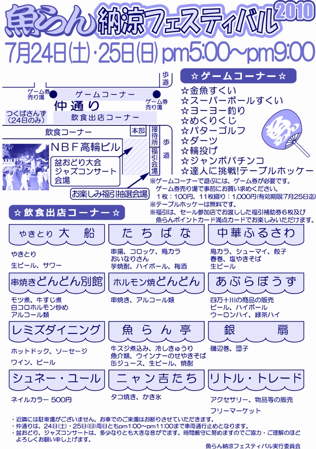 魚らん納涼フェスティバル・縁日の内容がまとまりました。