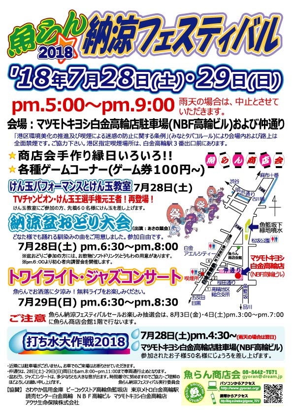 7月28日(土)・29日(日)の2日間、魚らん2018納涼フェスティバルを開催いたします。