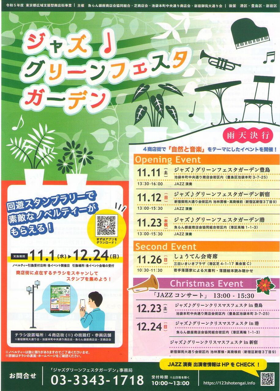 場所:魚らん商店会館前(港区高輪1-1-3)JAZZ演奏に関する出演者情報などは、こちらを。ジャズ♪グリーンフェスタガーデン