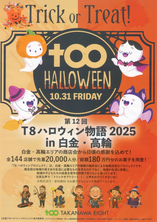 高輪地区の商店会協同同時開催のハロウィンイベント『第12回・T8ハロウィン物語2025 in 白金・高輪』を開催します。